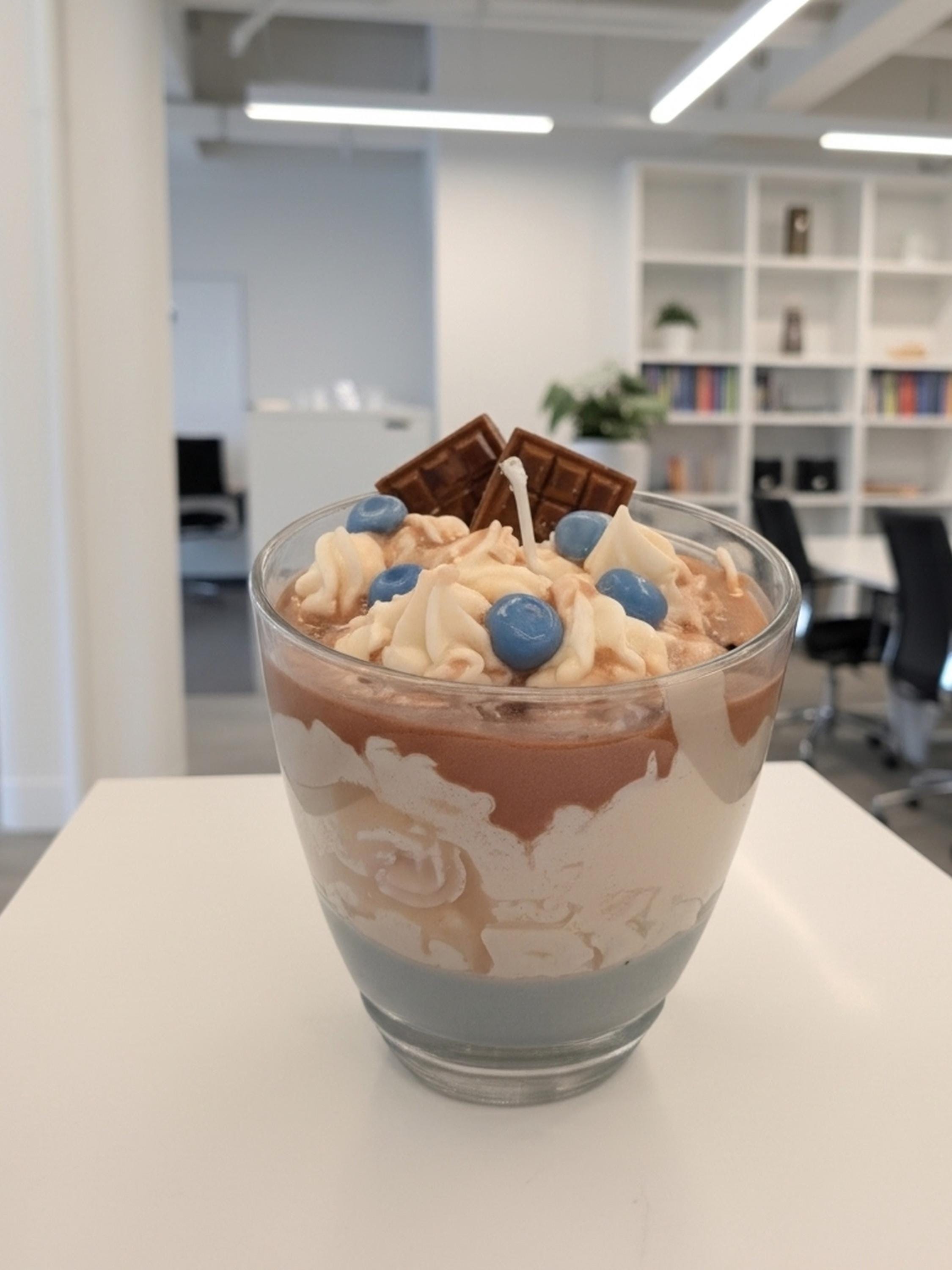 A blueberry dessert candle smelling of cinnamon and vanilla offers a rich, aroma that evokes fresh, warm baked goods. The scent profile typically blends the juicy, sweet fruitiness of wild blueberries with the warm, spicy notes of cinnamon and the creamy, comforting base of vanilla bean