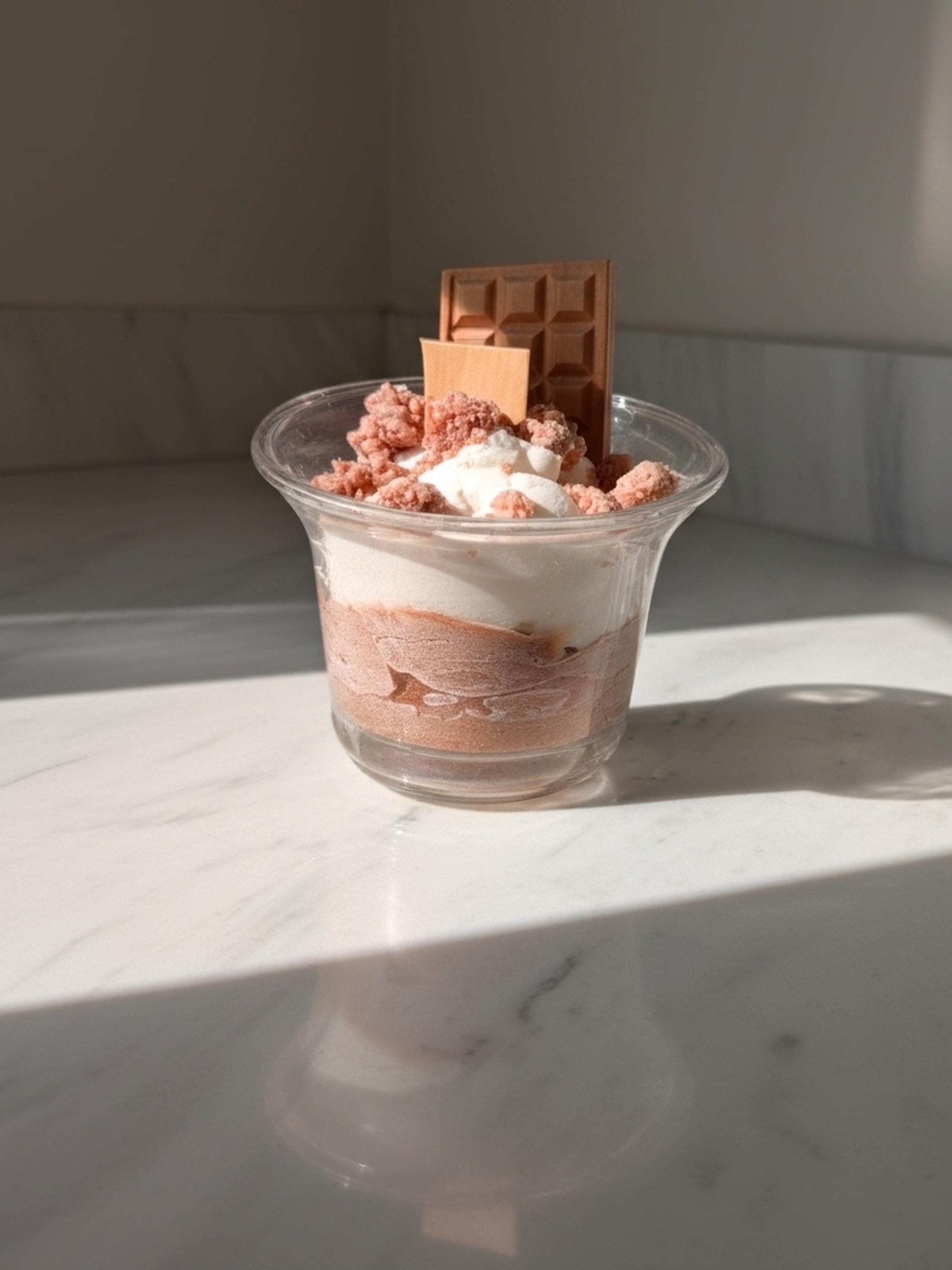 This dessert-inspired candle is designed to look and smell like a freshly baked, decadent treat, combining rich chocolate brownie and sweet vanilla aromas with a realistic whipped cream topping.